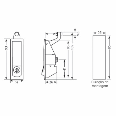 O2 - Fecho Lingueta Manopla com Chave Yale